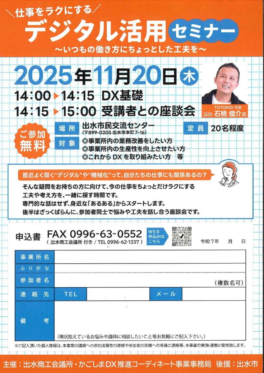 ℡0996-62-1337 FAX0996-63-0552(出水商工会議所)
