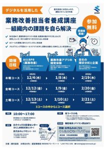 鹿児島県では県内のデジタル人材育成・確保のため,企業や団体における業務改善担当者向けの研修を開催します。